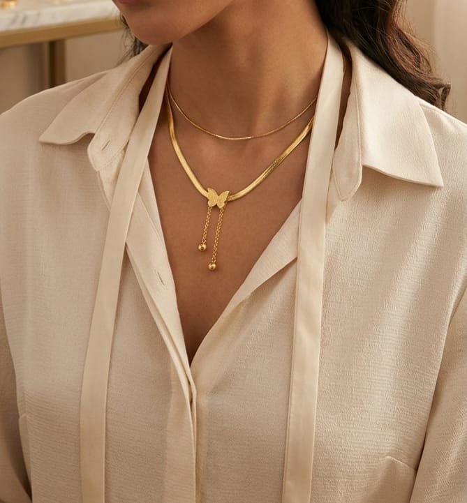 + Free ShippingAjoutez une touche de poésie et de glamour à votre décolleté avec ce sublime collier en plaqué or. Un design unique qui mélange modernité et finesse.